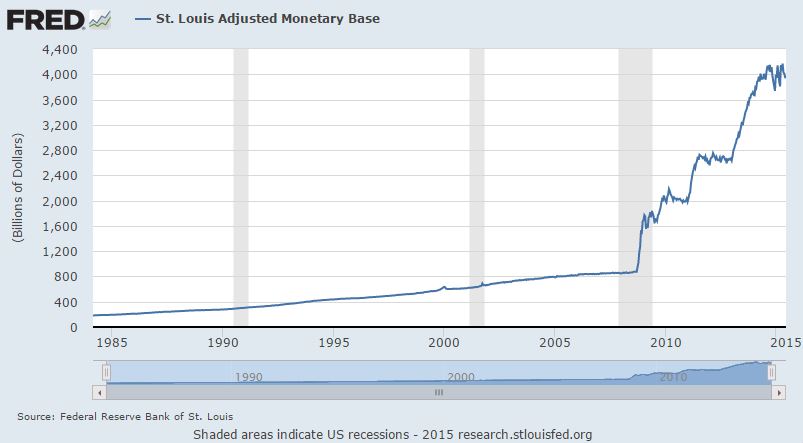 Here’s what the Fed has done to the base money supply since the recession caused by the housing bubble going bust:
