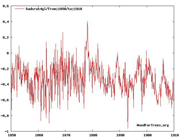 Here’s a closer look at HadCRUT4 temperatures for that period of 1850 to 1910: