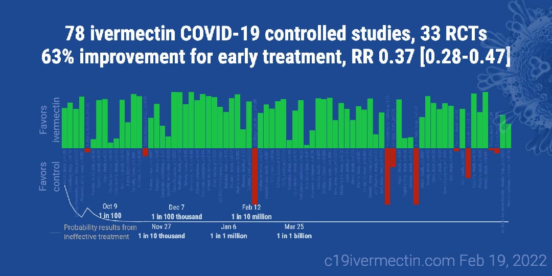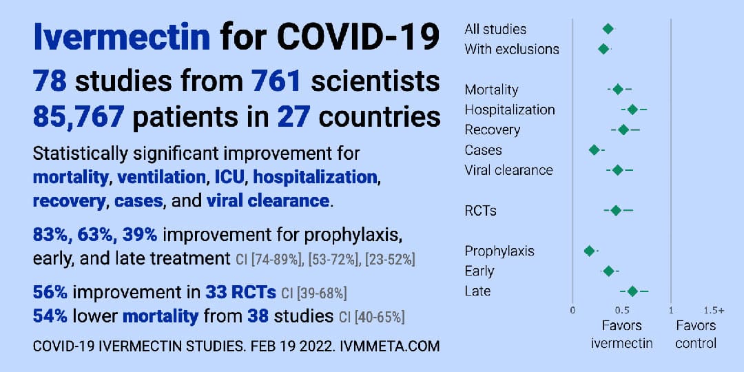 That would be consistent with the findings of other studies that ivermectin is effective for preventing severe disease and death, such as this large observational study from Brazil. The data overwhelmingly favor use of ivermectin according to a real-time meta-analysis of ivermectin studies accessible at https://c19ivermectin.com/. Here are images from that site summarizing the current data (as of February 19, 2022):
