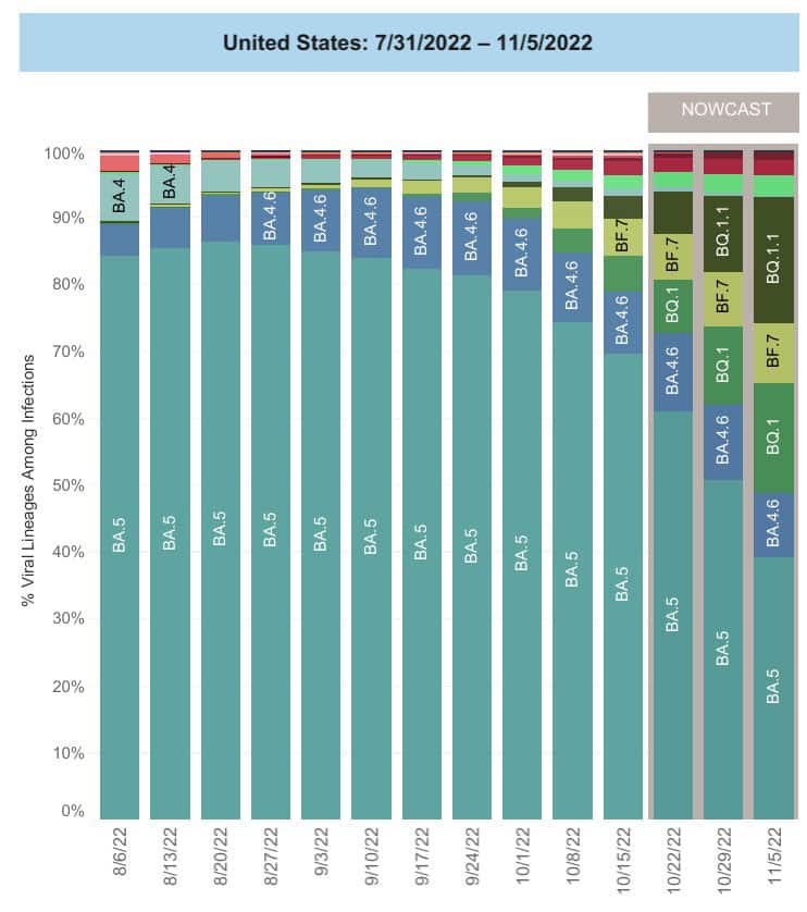 Of those subvariants, BA.4 and BA.5 are the most relevant since they, and particularly the latter, have been the predominant Omicron subvariants circulating in the US. Here are the variant proportions from the end of July to the present according to data from the US Centers for Disease Control and Prevention (CDC):
