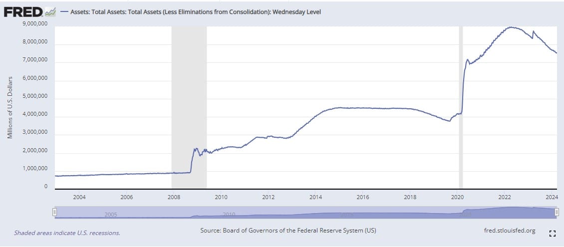 To remind you further of the context, the Federal Reserve by June 2022 increased its balance sheet by nearly $5 trillion, from about $4 trillion up to $9 trillion: