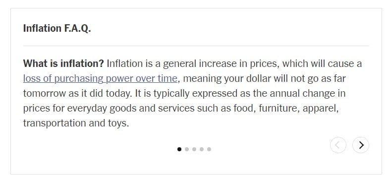 Perusing New York Times articles directly related to the topic of price inflation, one can find an “Inflation FAQ” purporting to explain what inflation is and what causes it.
