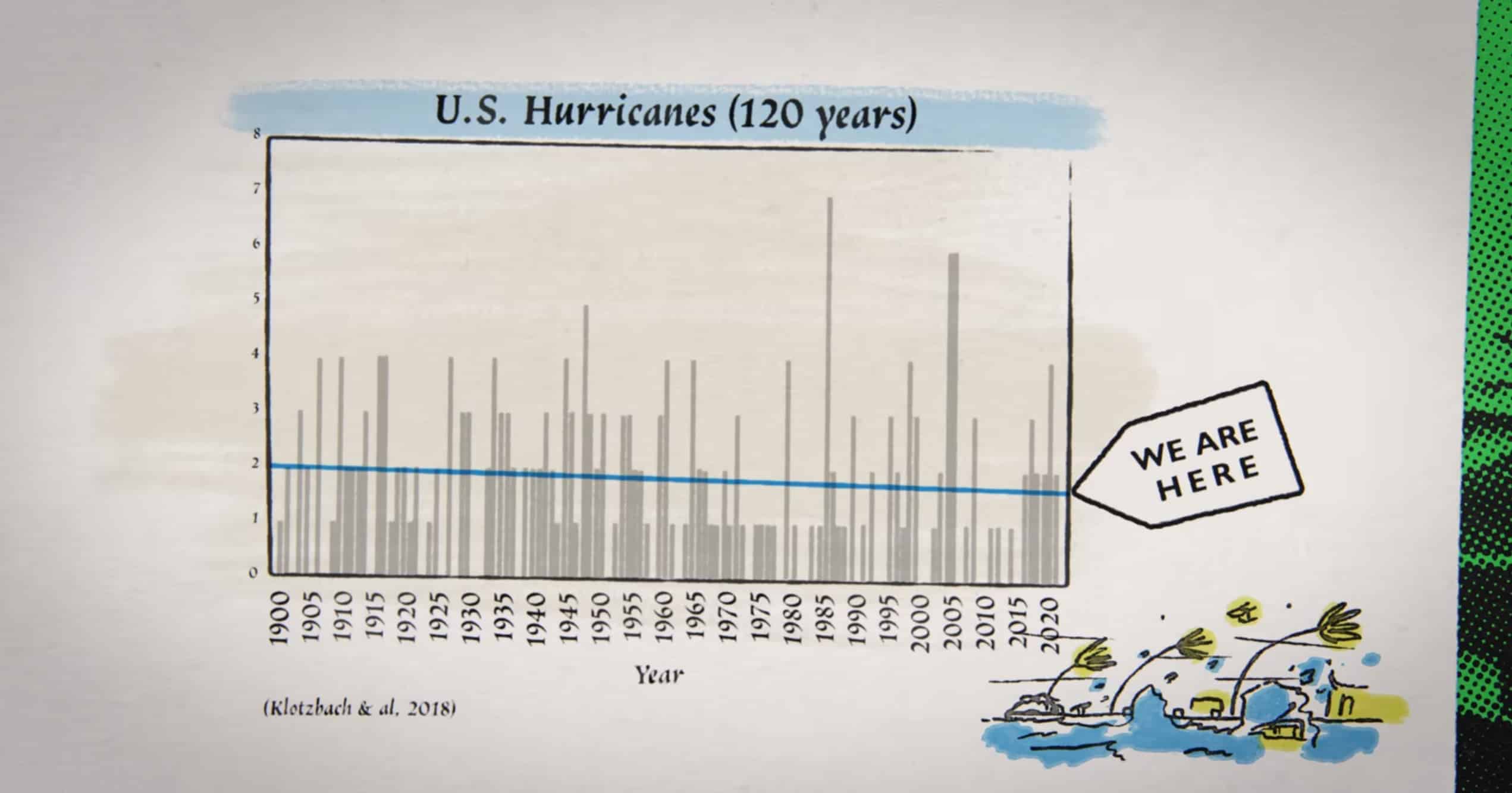 “The extreme weather events story is just absurd,” an interviewee contends in the film. “There’s no basis to it at all. It’s just based on propaganda. The actual data shows the opposite.”