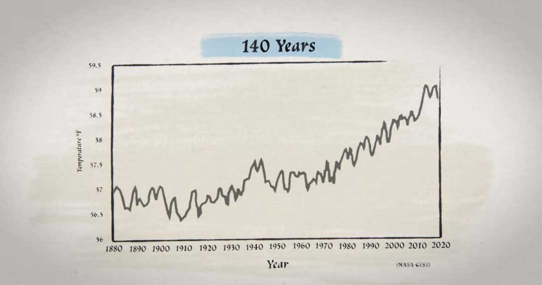 Next, data from the Goddard Institute for Space Studies (GISS) under the National Aeronautics and Space Administration (NASA) is presented showing the general increase in temperatures over the past 140 years: