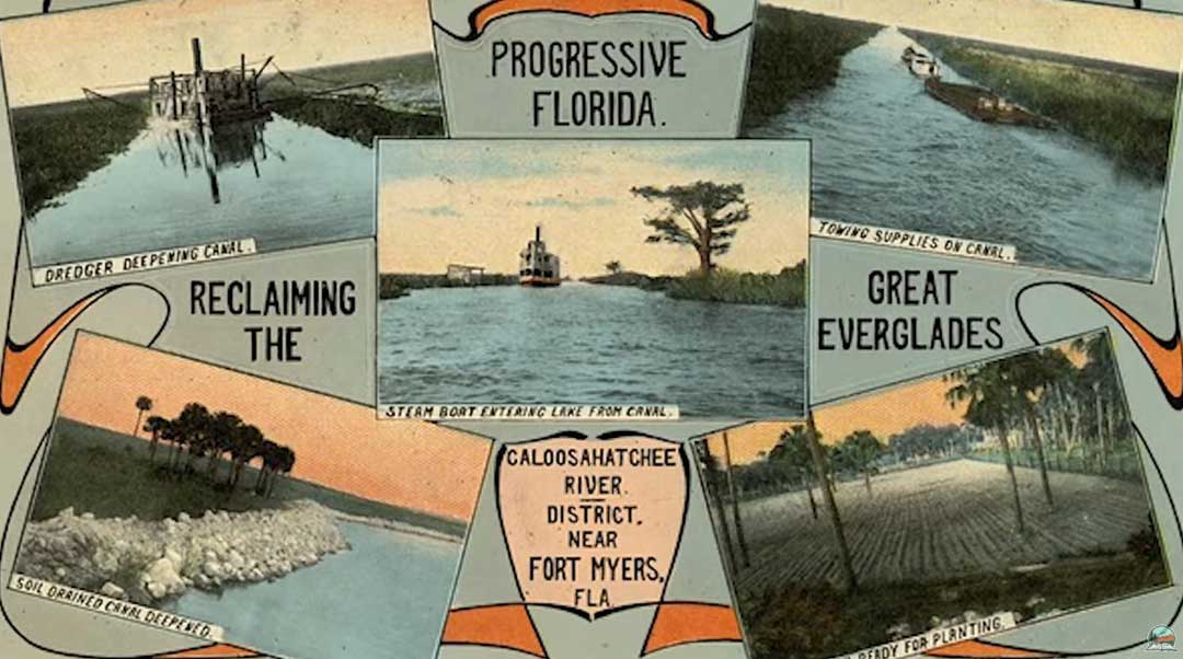 There is no shortage of irony in this old propaganda poster shown below (a screenshot from the above video), on which the “Progressive” policy of “Reclaiming the Everglades” was promoted. As if it nature had somehow stolen the land from humans so that the land’s natural state represented a departure from what it should be according to the imagination of central planners.