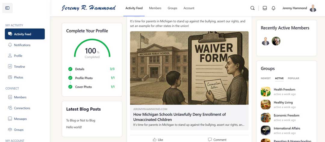 The private membership community is not hosted on some third-party social media site that censors truth-tellers and sells your data. It is a feature-rich, user-friendly platform hosted here on my own site.
